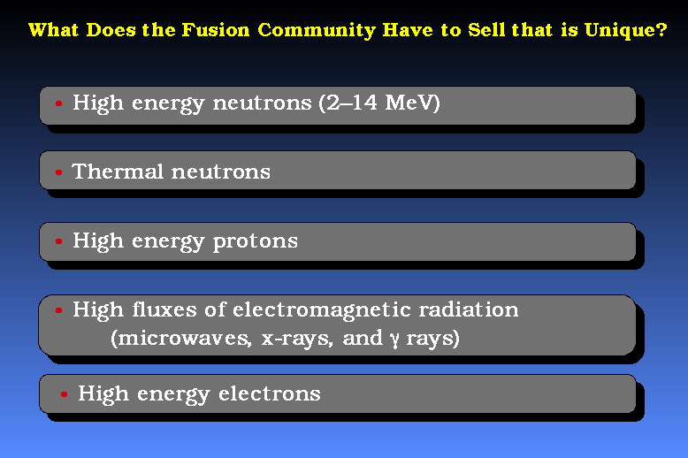 WHAT OTHER THINGS CAN ONE DO WITH FUSION DEVICES THAT CAN BURN HELIUM-3 BESIDE MAKING ELECTRICITY? The first question to ask in this regard is "What does the Fusion Community Have to Offer?"